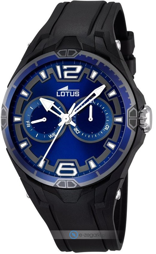 Lotus to zegarki produkowane w Hiszpani już ponad 30 lat. W tym czasie brand zakorzenił się na dobre na rynku sprzedaży czasomierzy w całej Europie. Zegarki Lotus kierowane są głównie dla młodych osób, potrzebujących nietuzinkowego designu przy jednoczesnym zachowaniu kluczowej jakości. Przy produkcji chronografów Lotus wykorzystywane są tylko wysokogatunkowe podzespoły, tak by mieć absolutną pewność ich długotrwej przydatności. Zastosowane w nich mechanizmy są produkcji japońskiej. Bez problemów więc można stwierdzić, że te zegarki łączą w sobie hiszpański temperament i japońską precyzję. Zegarki Lotus z pewnością wyróżniają się świeżym podejściem do kolorów, niebagatelnym wyglądem. Można wśród nich zobaczyć zegarki poświęcone sportom lotniczym oraz wodnym. Kupując w naszym serwisie zegarek Lotus masz gwarancję, że zegarek jest całkowicie nowy, pochodzi z oficjalnej dystrybucji i producent udziela na niego 24 miesięcznej gwarancji.