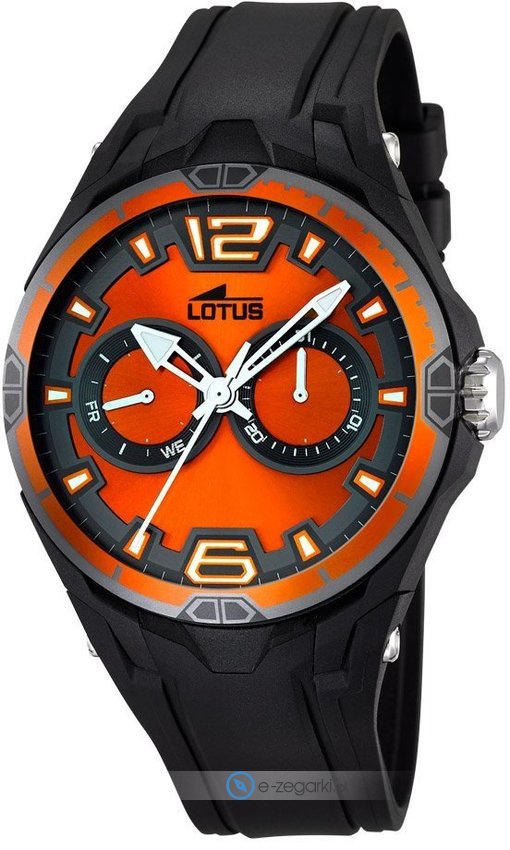 Zegarek męski L18184-3 marki Lotus to ciekawa propozycja dla ludzi ceniących sobie dbałość o detale oraz sprawne zachowanie mechanizmów. Charakteru dodaje wysokiej jakości tarcza w kolorze pomarańczowym.