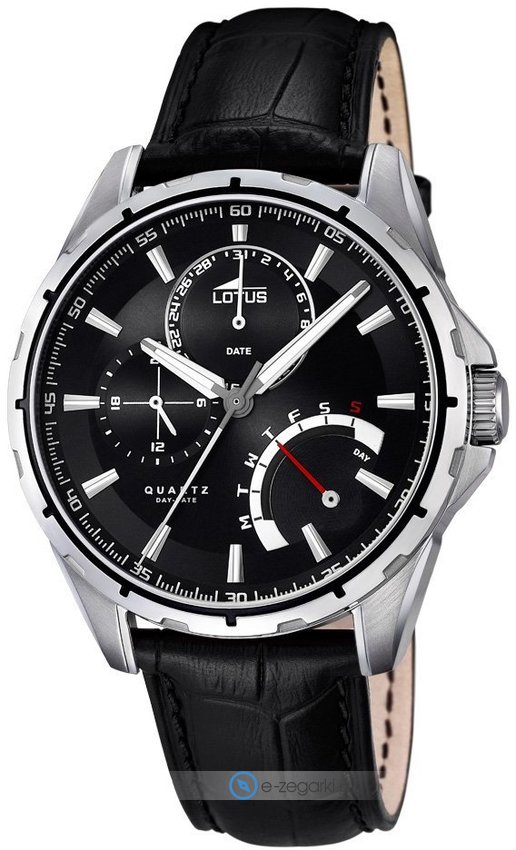 Model L18208-2 marki Lotus to gustowny zegarek naręczny męski, który posiada ciekawe rozwiązania i funkcje. Stylu nadaje wysokiej jakości cyferblat w kolorze czarnym.