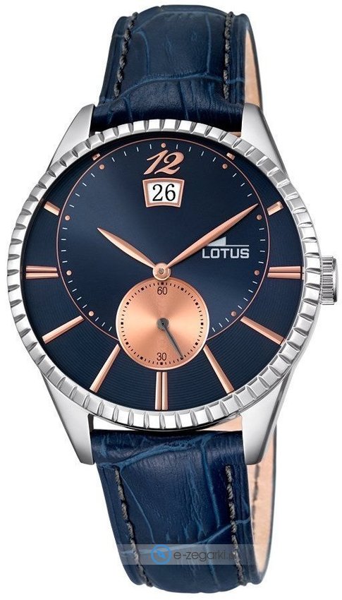 Model L18322-4 marki Lotus to gustowny zegarek naręczny męski, który jest wyposażony w pomysłowe rozwiązania oraz funkcje. Wysokiej jakości tarczę zegarka ozdobiono niebieskim kolorem. Zaprezentowana metodą analogową bieżąca godzina jest czytelna i szybka do sprawdzenia. Koperta szeroka jest na 41 mm - posiada okrągły kształt.