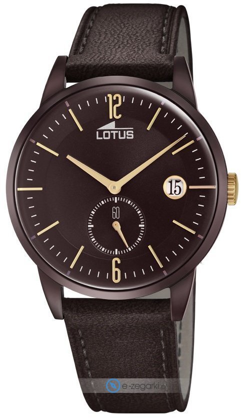 Model L18363-1 marki Lotus to stylowy zegarek naręczny męski, który wyposażono w pomysłowe rozwiązania oraz funkcje. Atrakcyjny wygląd czasomierza uzyskano m.in. poprzez tarczę w kolorze brązowym. Godzina przedstawiona jest w sposób analogowy co bez trudu pozwala ją odczytać. Koperta szeroka jest na 41 mm - posiada okrągły kształt.