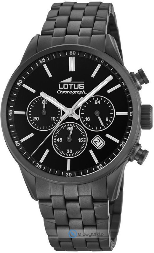 Zegarek męski L18668-1 marki Lotus to stylowe połączenie funkcjonalności a także modnego wzornictwa. Niestereotypowy wygląd zegarka osiągnięto m.in. poprzez cyferblat w kolorze czarnym. Aktualna godzina przedstawiona jest w sposób analogowy co niezmiernie łatwo pozwala ją odczytać. Koperta szeroka jest na 41 mm - wyróżnia się okrągłym kształtem.