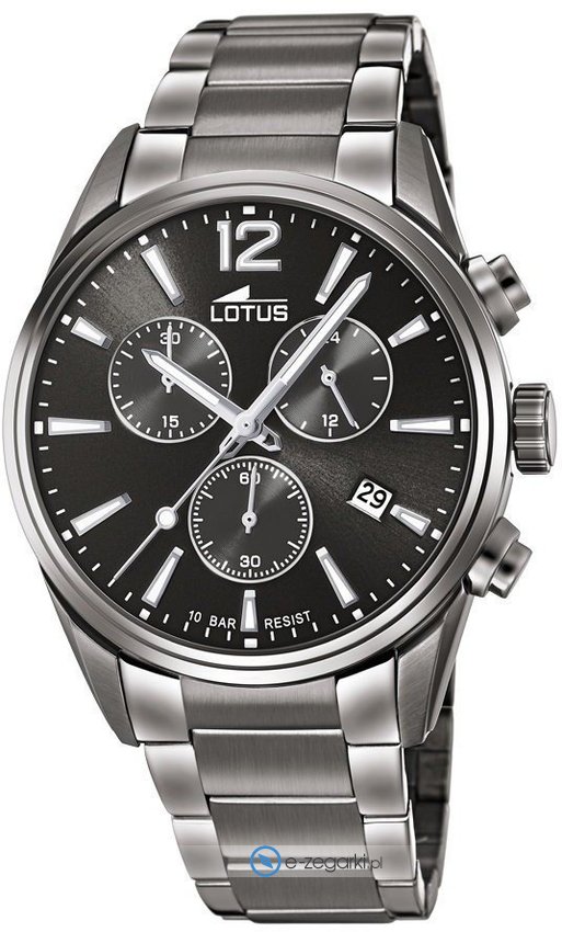 Zegarek męski L18682-1 marki Lotus to idealna pozycja dla ludzi ceniących sobie dbałość o szczegóły a także bezproblemowe zachowanie mechanizmów. Atrakcyjny wygląd czasomierza osiągnięto m.in. poprzez cyferblat w kolorze szarym. Pokazana metodą analogową bieżąca godzina jest czytelna i prosta do odczytania. Koperta szeroka jest na 42 mm - w kształcie okrągłym.