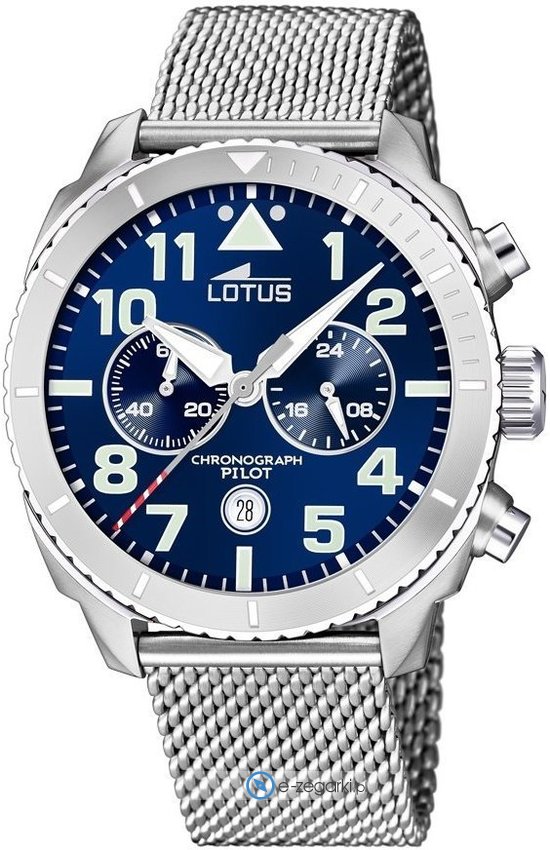 Zegarek męski L18704-1 marki Lotus to ciekawa pozycja dla ludzi ceniących sobie dbałość o detale jak również sprawne zachowanie mechanizmów. Ciekawą budowę czasomierza uzyskano dzięki tarczy w kolorze niebieskim. Zaprezentowana metodą analogową aktualna godzina jest czytelna i łatwa do odczytania. Koperta szeroka jest na 45 mm - wyróżnia się okrągłym kształtem.