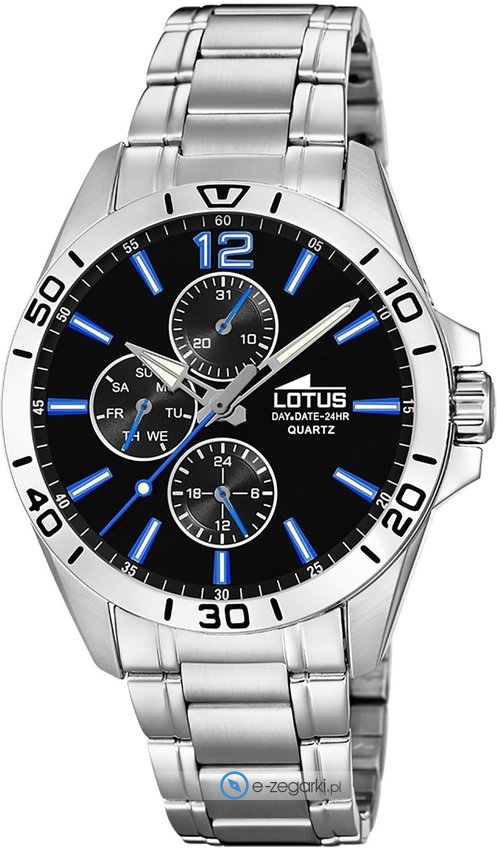Już od trzydziestu lat prowadzona jest sprzedaż hiszpańskich zegarków Lotus. W tym czasie marka zakorzeniła się na dobre na rynku sprzedaży zegarków w Europie. Zegarki Lotus skierowane są w większości dla młodych osób, potrzebujących nietuzinkowego wzornictwa przy jednoczesnym zachowaniu kluczowej jakości. Przy produkcji chronografów Lotus wykorzystywane są tylko wysokogatunkowe materiały, tak aby mieć absolutną pewność ich długiej przydatności. Użyte w nich mechanizmy pochodzą z cenionej japońskiej fabryki. Śmiało więc można stwierdzić, że te zegarki to połączenie japońskiej precyzji oraz hiszpańskiego temperamentu. Zegarki Lotus oczywiście wyróżniają się świeżym podejściem do kolorów, indywidualnym wyglądem. Można wśród nich odszukać czasomierze poświęcone sportom lotniczym oraz wodnym. Nabywając w naszym sklepie internetowym zegarek Lotus masz pewność, iż zegarek jest całkowicie nowy, pochodzi z autoryzowanej dystrybucji i producent udziela na niego 2 letniej gwarancji.