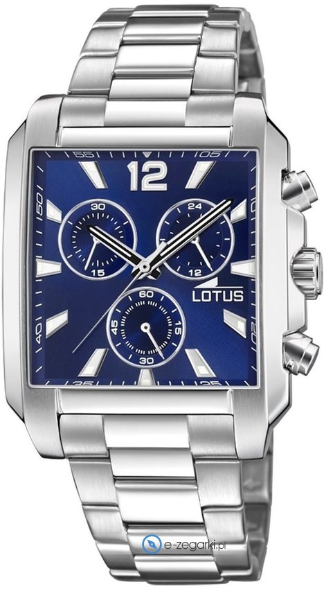 Zegarek męski L18850-2 marki Lotus to dobre połączenie funkcjonalności i modnego designu. Niebanalny wygląd zegarka osiągnięto także dzięki tarczy w kolorze niebieskim. Zaprezentowana metodą analogową bieżąca godzina jest czytelna i prosta do sprawdzenia. Koperta w barwach koloru srebrnego szeroka jest na 38 mm.