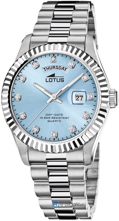 Lotus to zegarki produkowane w Hiszpani już ponad 30 lat. W tym czasie marka zakorzeniła się na stałe na rynku sprzedaży zegarków w Europie. Zegarki tej marki skierowane są przeważnie dla młodych osób, potrzebujących niebagatelnego wzornictwa przy jednoczesnym zachowaniu najwyższej jakości. Przy produkcji chronografów Lotus wykorzystywane są jedynie wysokogatunkowe podzespoły, tak by mieć pewność ich długotrwej przydatności. Użyte w nich mechanizmy pochodzą z cenionej japońskiej fabryki. Śmiało więc można napisać, że zegarki te łączą w sobie hiszpański temperament i japońską precyzję. Zegarki Lotus oczywiście wyróżniają się świeżym podejściem do kolorów, indywidualnym wyglądem. Można pośród nich zobaczyć czasomierze poświęcone sportom lotniczym lub wodnym. Nabywając w naszym sklepie internetowym zegarek Lotus masz gwarancję, iż zegarek jest całkowicie nowy, pochodzi z oficjalnej sprzedaży i producent udziela mu dwu letniej gwarancji.