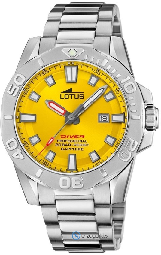 Męski zegarek Lotus L18926-1 to zegarek, który dzięki swemu wzornictwu zawsze będzie prezentował się dobrze. Nieschematyczny wygląd zegarka osiągnięto m.in. poprzez tarczę w kolorze żółtym. Godzina przedstawiona jest w sposób analogowy co niezmiernie łatwo pozwala ją odczytać. Koperta szeroka jest na 44 mm - w kształcie okrągłym.