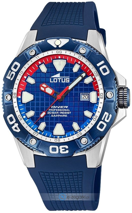 Męski zegarek Lotus L18927-2 to zegarek, który dzięki swemu wzornictwu zawsze będzie prezentował się dobrze. Tarcza zegarka jest w kolorze niebieskim. Pokazana metodą analogową bieżąca godzina jest czytelna i łatwa do odczytania. Koperta szeroka jest na 45 mm - ma okrągły kształt.