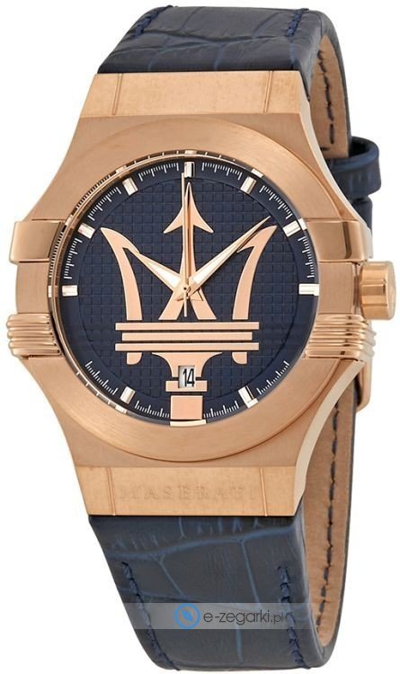 Model R8851108027 marki Maserati to gustowny zegarek naręczny męski, który posiada ciekawe rozwiązania i funkcje. Cyferblat zegarka jest w kolorze niebieskim. Zegarek ten pokazuje aktualny czas w formacie analogowym dzięki czemu odczyt jest bardzo łatwy. Koperta jest w kolorze różowo złotym szeroka jest na 42 mm oraz ma grubość 11 mm - wyróżnia się okrągłym kształtem.