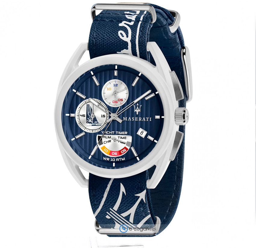 Model R8851132003 marki Maserati to stylowy zegarek naręczny męski, który posiada ciekawe rozwiązania i funkcje. Cyferblat zegarka jest w kolorze niebieskim. Zegarek ten pokazuje aktualny czas w formacie analogowym dzięki czemu odczyt jest intuicyjny. Koperta została pokryta kolorem srebrnym szeroka jest na 41 mm oraz ma grubość 11 mm - cechuje się okrągłym kształtem.