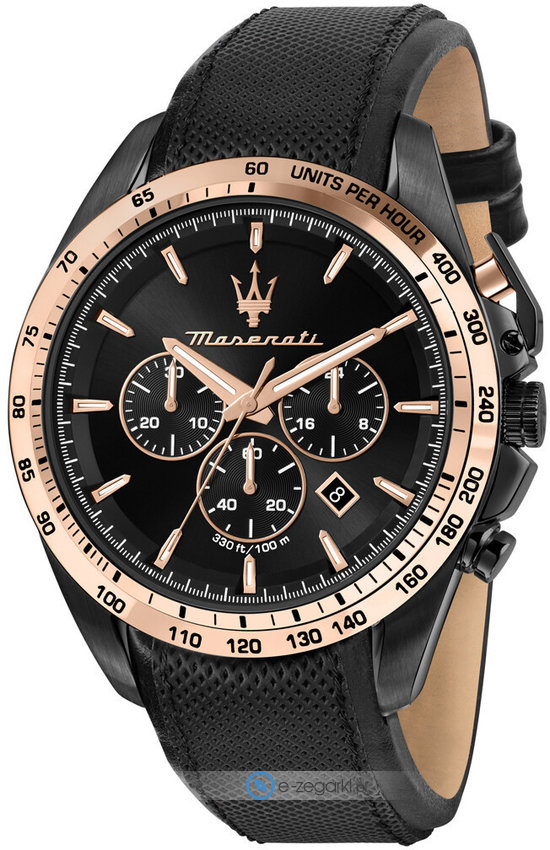 Model R8871612038 marki Maserati to stylowy zegarek naręczny męski, który jest wyposażony w ciekawe rozwiązania oraz funkcje. Niebanalny wygląd czasomierza osiągnięto także dzięki tarczy w kolorze czarnym. Pokazana metodą analogową bieżąca godzina jest czytelna i szybka do sprawdzenia. Koperta w odcieniach koloru brązowego szeroka jest na 45 mm - w kształcie okrągłym.