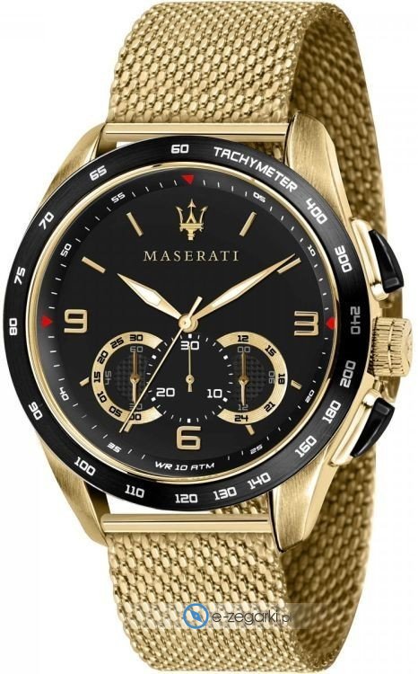 Męski zegarek Maserati R8873612010 to zegarek, który dzięki swemu wzornictwu zawsze będzie prezentował się dobrze. Charakter zapewnia wysokiej klasy tarcza w kolorze czarnym. Aktualna godzina przedstawiona jest w sposób analogowy co intuicyjnie pozwala ją odczytać. Koperta jest ozdobiona kolorem złotym szeroka jest na 47 mm oraz ma grubość 13 mm - cechuje się okrągłym kształtem.