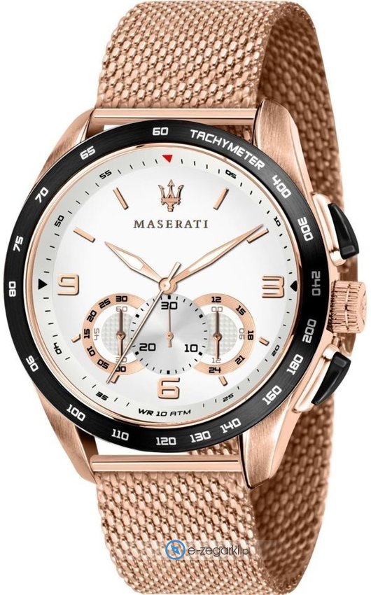 Zegarek męski R8873612011 marki Maserati to dobre połączenie funkcjonalności oraz ciekawego designu. Charakterystyczny wygląd czasomierza osiągnięto także dzięki tarczy w kolorze białym. Zegarek ten prezentuje aktualny czas w formacie analogowym dzięki czemu odczyt jest bardzo łatwy. Koperta jest w kolorze różowo złotym szeroka jest na 47 mm oraz ma grubość 13 mm - cechuje się okrągłym kształtem.