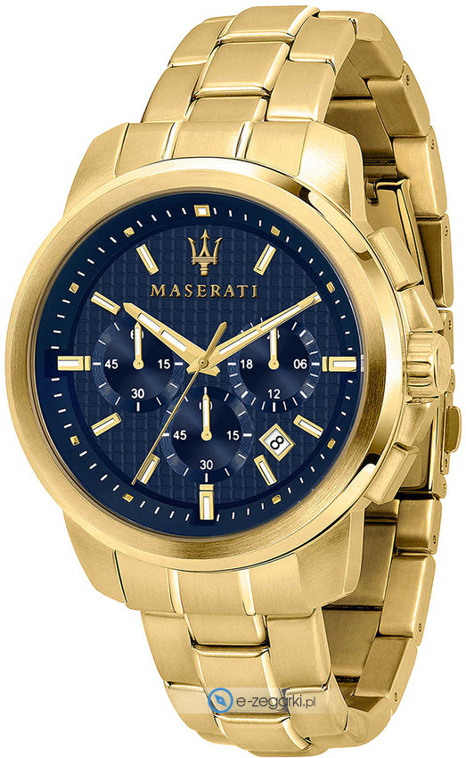 Męski zegarek Maserati R8873621021 to zegarek, który dzięki swemu wzornictwu zawsze będzie prezentował się dobrze. Tarcza zegarka jest w kolorze granatowym. Zegarek ten pokazuje aktualny czas w formacie analogowym dzięki temu odczyt jest bardzo łatwy. Koperta została ozdobiona kolorem złotym szeroka jest na 44 mm oraz ma grubość 11 mm - cechuje się okrągłym kształtem.