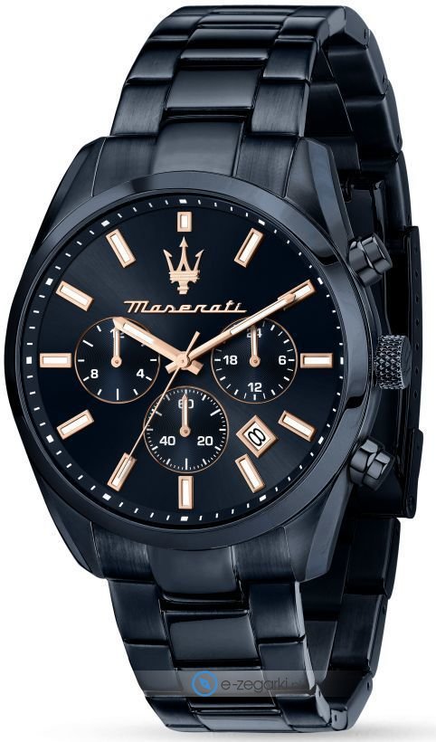 Zegarek męski R8873626003 marki Maserati to stylowe połączenie funkcjonalności oraz modnego wzornictwa. Atrakcyjną stylistykę zegarka osiągnięto z pomocą tarczy w kolorze niebieskim. Zaprezentowana metodą analogową bieżąca godzina jest czytelna i łatwa do odczytania. Koperta w barwach koloru niebieskiego szeroka jest na 43 mm oraz ma grubość 10 mm - w kształcie okrągłym.