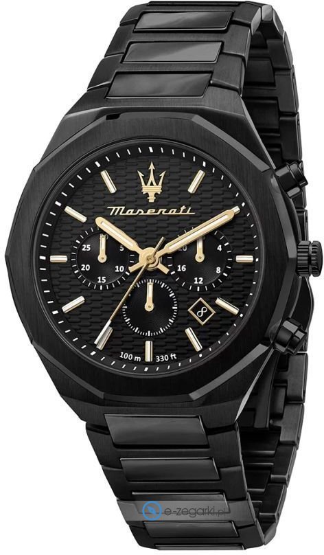 Męski zegarek Maserati R8873642005 to zegarek, który dzięki swemu wzornictwu zawsze będzie prezentował się dobrze. Wysokiej trwałości tarczę zegarka ozdobiono czarnym kolorem. Pokazana metodą analogową aktualna godzina jest czytelna i prosta do odczytania. Koperta jest w kolorze czarnym szeroka jest na 45 mm oraz ma grubość 10 mm - ma okrągły kształt.
