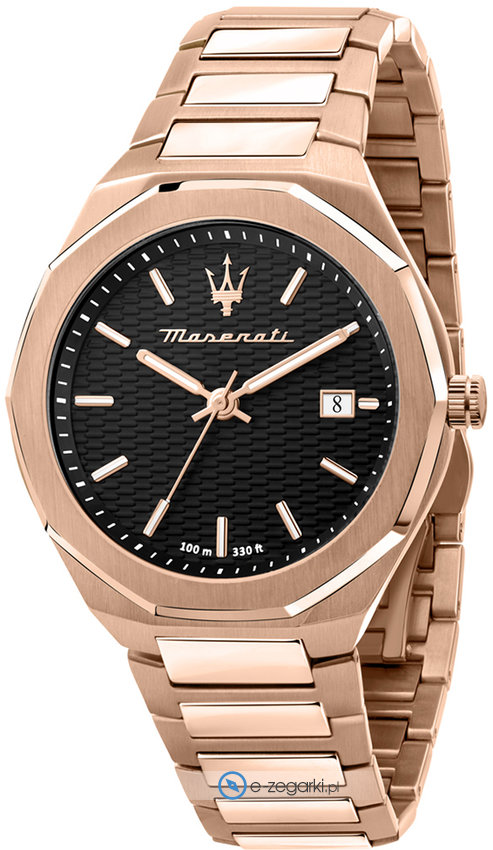 Męski zegarek Maserati R8873642007 to zegarek, który dzięki swemu wzornictwu zawsze będzie prezentował się dobrze. Atrakcyjną budowę zegarka osiągnięto z pomocą tarczy w kolorze czarnym. Godzina zaprezentowana jest w sposób analogowy co bez trudu pozwala ją odczytać. Koperta jest ozdobiona kolorem różowo złotym szeroka jest na 45 mm oraz ma grubość 11 mm - cechuje się okrągłym kształtem.