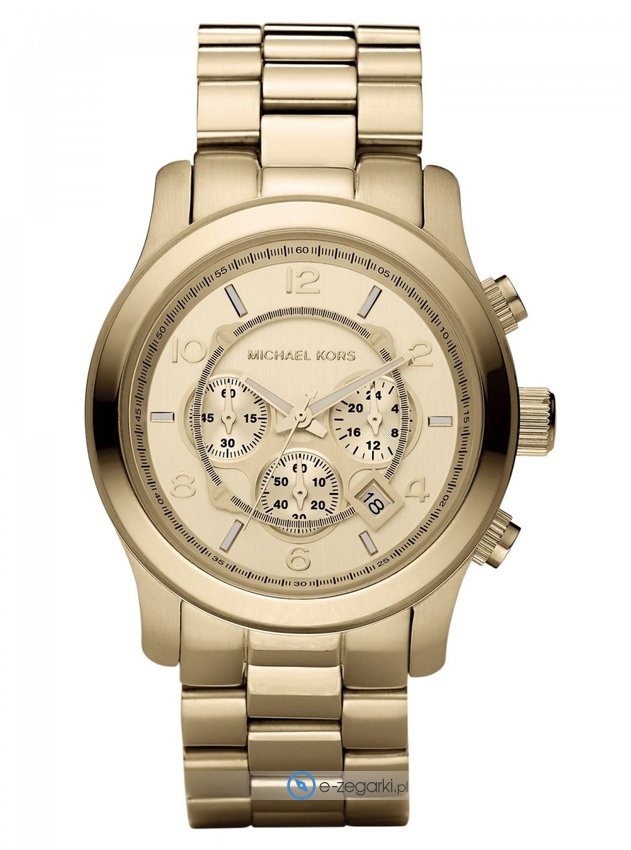 Zegarek MK8077 zasilany jest za pomocą baterii kwarcowej. Odporna na korozję oraz oddziaływanie czynników atmosferycznych bransoleta złotego koloru cechuje się jakością, a także trwałością.