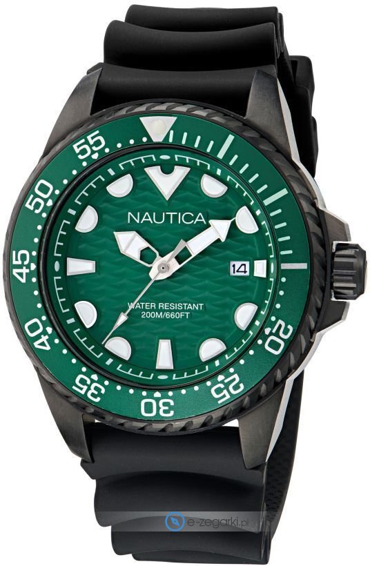 Męski zegarek Nautica NAPSDS503 to zegarek, który dzięki swemu wzornictwu zawsze będzie prezentował się dobrze. Charakteru dodaje wysokiej klasy tarcza w kolorze zielonym. Zegarek ten prezentuje godzinę w formacie analogowym dzięki temu odczyt jest bardzo łatwy. Koperta jest w kolorze czarnym szeroka jest na 47 mm - w kształcie okrągłym.