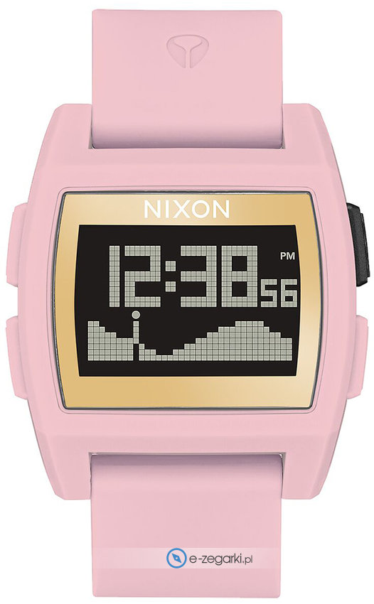 Nixon A1104-2773 to męski zegarek przeznaczony dla osób szukających zegarka z kolekcji Nixon Base Tide. Nieschematyczny wygląd zegarka osiągnięto m.in. poprzez cyferblat w kolorze czarnym. Zegarek ten pokazuje godzinę w formacie cyfrowym dzięki czemu odczyt jest bezproblemowy. Koperta została ozdobiona kolorem różowym szeroka jest na 38 mm oraz ma grubość 11 mm.