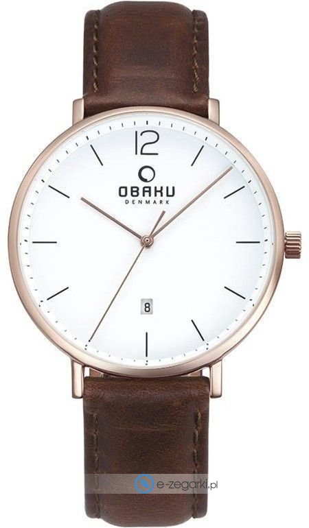 Męski zegarek Obaku V181GDVWRN to zegarek, który dzięki swemu wzornictwu zawsze będzie prezentował się dobrze. Aktualna godzina pokazywana jest w sposób analogowy co bez trudu pozwala ją odczytać. Koperta szeroka jest na 40 mm oraz ma grubość 11 mm - cechuje się okrągłym kształtem.