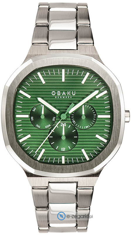 Zegarek męski V275GMCESC marki Obaku to idealna propozycja dla osób ceniących sobie dbałość o detale jak również bezproblemowe funkcjonowanie mechanizmów. Charakter zapewnia wysokiej klasy cyferblat w kolorze zielonym. Pokazana metodą analogową aktualna godzina jest czytelna i łatwa do odczytania. Koperta została ozdobiona kolorem srebrnym szeroka jest na 42 mm - ma okrągły kształt.