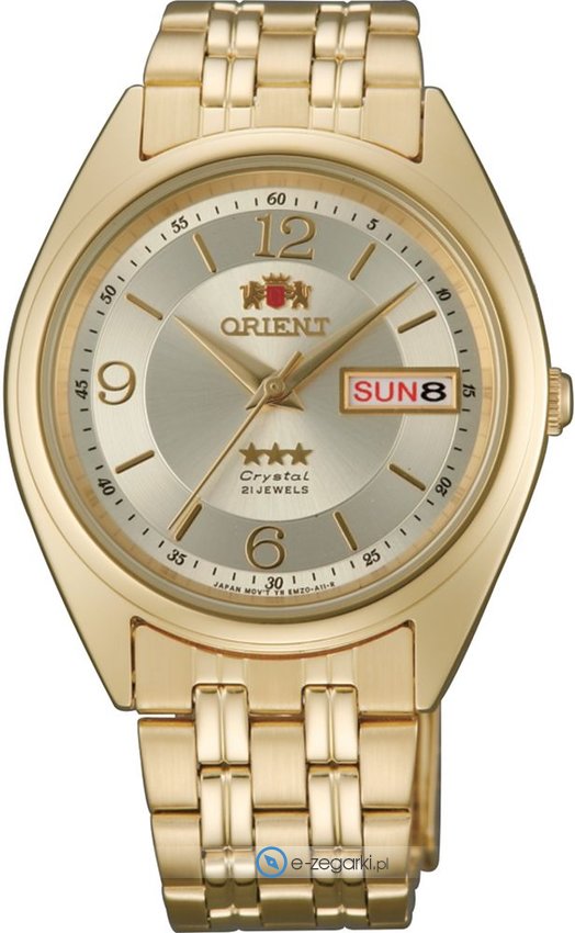 Model FAB0000CC9 marki Orient to gustowny zegarek naręczny męski, który jest wyposażony w pomysłowe rozwiązania i funkcje. Wysokiej jakości cyferblat zegarka pokryto złotym kolorem. Zegarek ten prezentuje godzinę w formacie analogowym dzięki czemu odczyt jest bardzo łatwy. Koperta jest w kolorze złotym szeroka jest na 37 mm oraz ma grubość 11 mm - cechuje się okrągłym kształtem.