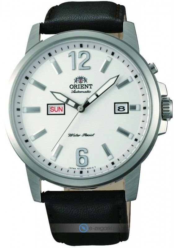 Model FEM7J00AW9 marki Orient to elegancki zegarek naręczny męski, który jest wyposażony w ciekawe rozwiązania i funkcje. Charakterystyczną budowę zegarka uzyskano dzięki tarczy w kolorze białym. Aktualna godzina pokazywana jest w sposób analogowy co bez trudu pozwala ją odczytać. Koperta szeroka jest na 42 mm oraz ma grubość 12 mm - ma okrągły kształt.