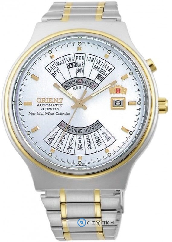 Zegarek męski FEU00000WW marki Orient to idealna propozycja dla osób ceniących sobie dbałość o detale jak również sprawne zachowanie mechanizmów. Wysokiej jakości cyferblat zegarka pokryto białym kolorem. Godzina zaprezentowana jest w sposób analogowy co bez trudu pozwala ją odczytać. Koperta szeroka jest na 43 mm oraz ma grubość 12 mm - wyróżnia się okrągłym kształtem.