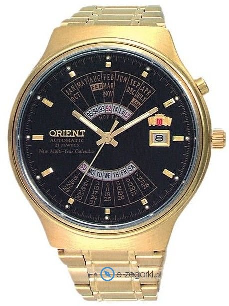 Model FEU00008BW marki Orient to gustowny zegarek naręczny męski, który wyposażono w ciekawe rozwiązania oraz funkcje. Tarcza zegarka jest w kolorze czarnym. Pokazana metodą analogową aktualna godzina jest czytelna i łatwa do sprawdzenia. Koperta w barwach koloru złotego szeroka jest na 43 mm oraz ma grubość 12 mm - w kształcie okrągłym.