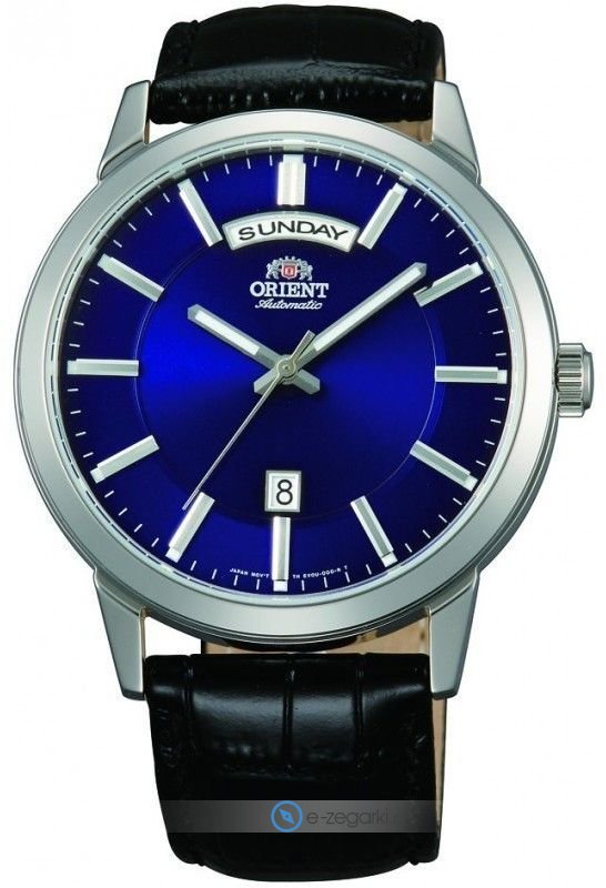 Model FEV0U003DH marki Orient to stylowy zegarek naręczny męski, który wyposażono w ciekawe rozwiązania i funkcje. Wysokiej jakości tarczę zegarka pokryto niebieskim kolorem. Aktualna godzina pokazywana jest w sposób analogowy co niezmiernie łatwo pozwala ją odczytać. Koperta w odcieniach koloru srebrnego szeroka jest na 41 mm oraz ma grubość 11 mm - w kształcie okrągłym.