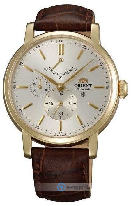 Zegarek męski FEZ09002S0 marki Orient to dobre połączenie funkcjonalności i modnego designu. Niebanalną konstrukcję czasomierza uzyskano z pomocą tarczy w kolorze srebrnym. Pokazana metodą analogową bieżąca godzina jest czytelna i łatwa do odczytania. Koperta została ozdobiona kolorem złotym szeroka jest na 41 mm oraz ma grubość 12 mm - w kształcie okrągłym.