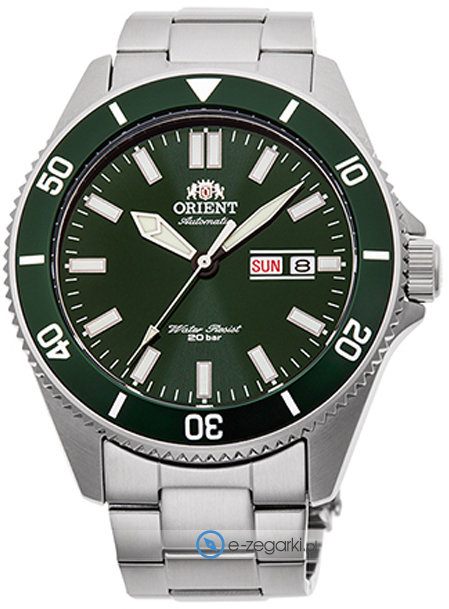 Model RA-AA0914E19B marki Orient to stylowy zegarek naręczny męski, który posiada ciekawe rozwiązania oraz funkcje. Stylu nadaje wysokiej jakości cyferblat w kolorze zielonym. Zegarek ten prezentuje aktualny czas w formacie analogowym dzięki temu odczyt jest bardzo łatwy. Koperta jest w kolorze srebrnym szeroka jest na 44 mm oraz ma grubość 13 mm - w kształcie okrągłym.