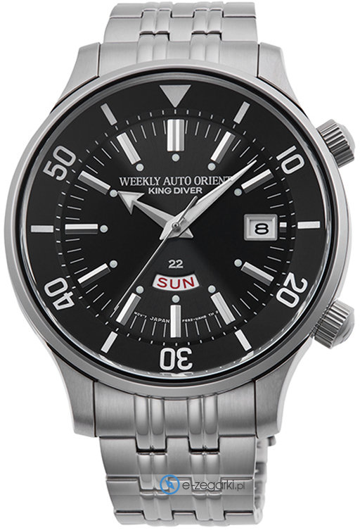 Model RA-AA0D01B King Diver marki Orient to stylowy zegarek naręczny męski, który posiada ciekawe rozwiązania oraz funkcje. Niebanalną budowę czasomierza osiągnięto dzięki tarczy w kolorze czarnym. Aktualna godzina przedstawiona jest w sposób analogowy co niezmiernie łatwo pozwala ją odczytać. Koperta została pokryta kolorem srebrnym szeroka jest na 44 mm oraz ma grubość 14 mm - w kształcie okrągłym.