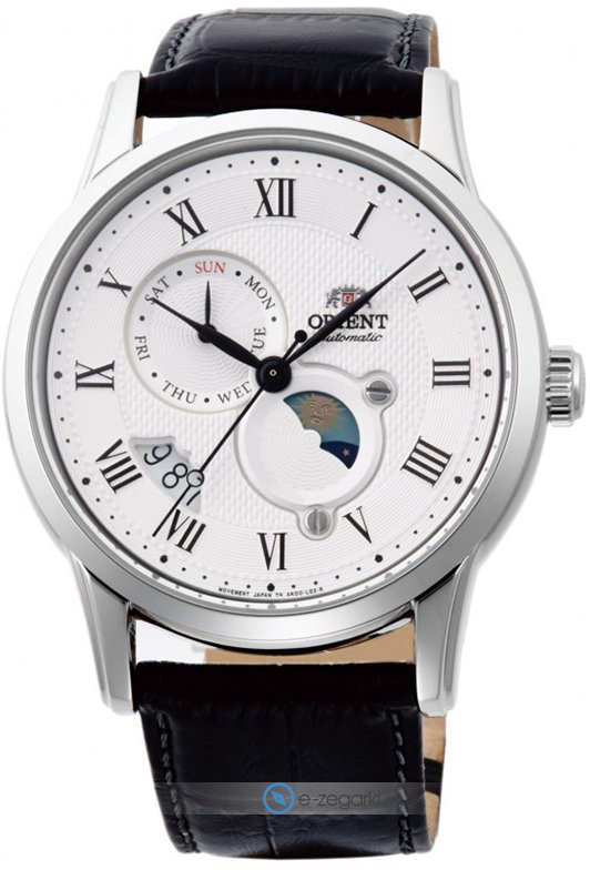 Zegarek męski RA-AK0008S10B marki Orient to dobre połączenie funkcjonalności a także ciekawego wzornictwa. Stylu nadaje wysokiej jakości cyferblat w kolorze białym. Aktualna godzina zaprezentowana jest w sposób analogowy co niezmiernie łatwo pozwala ją odczytać. Koperta w odcieniach koloru srebrnego szeroka jest na 42 mm oraz ma grubość 14 mm - ma okrągły kształt.