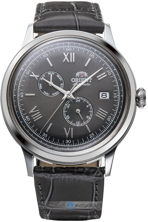 Model RA-AK0704N10B marki Orient to stylowy zegarek naręczny męski, który jest wyposażony w pomysłowe rozwiązania i funkcje. Styl zapewnia wysokiej klasy tarcza w kolorze szarym. Pokazana metodą analogową aktualna godzina jest czytelna i prosta do sprawdzenia. Koperta została ozdobiona kolorem srebrnym szeroka jest na 41 mm oraz ma grubość 13 mm - charakteryzuje się okrągłym kształtem.