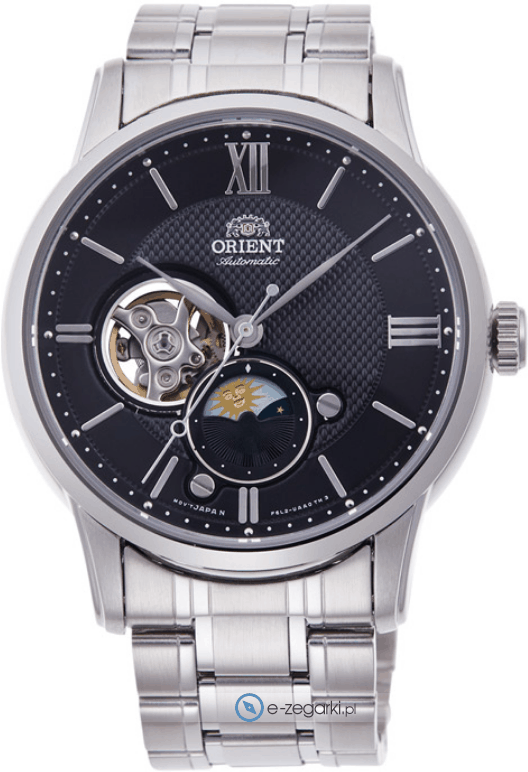 Model RA-AS0008B10B marki Orient to elegancki zegarek naręczny męski, który wyposażono w ciekawe rozwiązania i funkcje. Niebanalny wygląd zegarka osiągnięto także dzięki tarczy w kolorze czarnym. Godzina prezentowana jest w sposób analogowy co niezmiernie łatwo pozwala ją odczytać. Koperta w barwach koloru srebrnego szeroka jest na 41 mm oraz ma grubość 14 mm - w kształcie okrągłym.