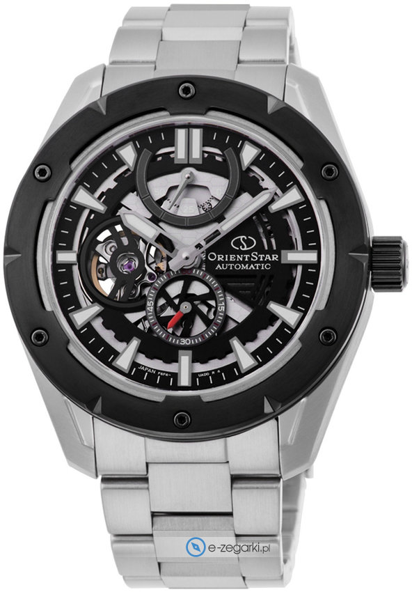 Model RE-AV0A01B00B marki Orient Star to stylowy zegarek naręczny męski, który posiada ciekawe rozwiązania oraz funkcje. Wysokiej jakości cyferblat zegarka ozdobiono czarnym kolorem. Zegarek ten pokazuje godzinę w formacie analogowym dzięki czemu odczyt jest bardzo łatwy. Koperta jest w kolorze srebrnym szeroka jest na 41 mm oraz ma grubość 12 mm - posiada okrągły kształt.