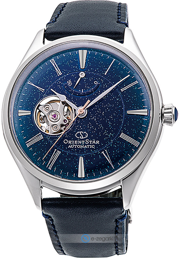 Orient Star RE-AT0205L00B to męski zegarek kierowany dla osób szukających zegarka z rodziny Orient Star Skeleton. Ciekawy wygląd czasomierza uzyskano także dzięki tarczy w kolorze granatowym. Zaprezentowana metodą analogową aktualna godzina jest czytelna i prosta do sprawdzenia. Koperta jest ozdobiona kolorem srebrnym szeroka jest na 40 mm - ma okrągły kształt.