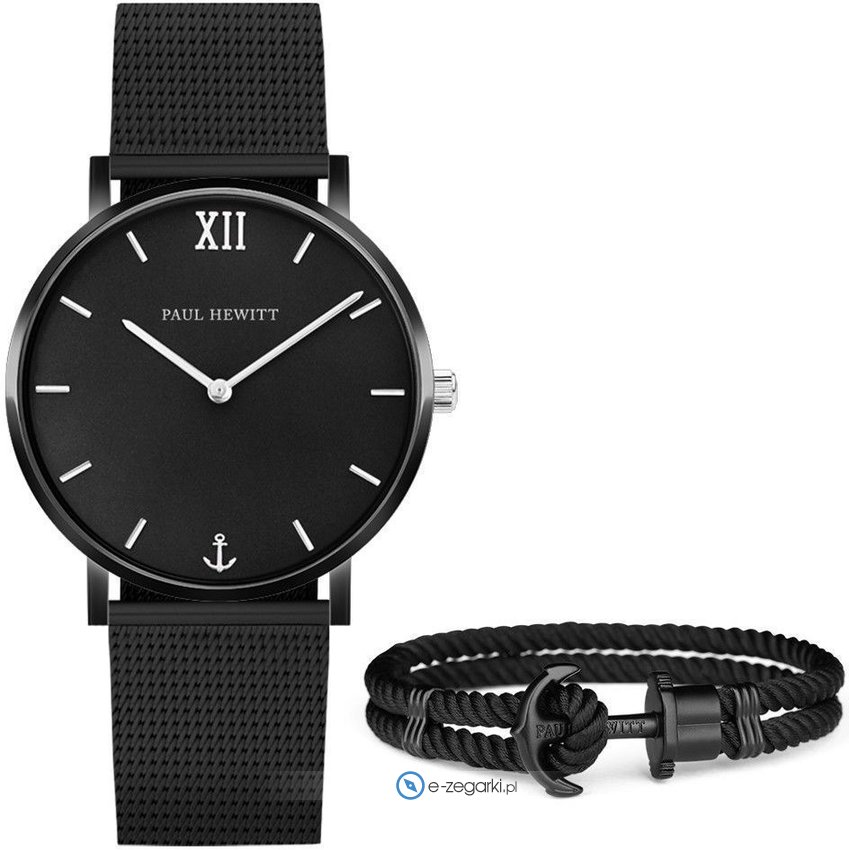 Model PH-PM-4-XL marki Paul Hewitt to gustowny zegarek naręczny męski, który posiada ciekawe rozwiązania i funkcje. Atrakcyjny wygląd zegarka uzyskano m.in. poprzez cyferblat w kolorze czarnym. Zegarek ten pokazuje aktualny czas w formacie analogowym dzięki czemu odczyt jest bardzo łatwy. Koperta jest w kolorze czarnym szeroka jest na 39 mm oraz ma grubość 7 mm - w kształcie okrągłym.