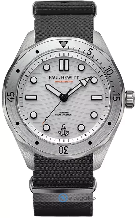 Zegarek męski PH-W-0479 marki Paul Hewitt to dobra propozycja dla ludzi ceniących sobie dbałość o detale oraz bezproblemowe zachowanie mechanizmów. Wysokiej trwałości cyferblat zegarka pokryto białym kolorem. Zegarek ten pokazuje godzinę w formacie analogowym dzięki czemu odczyt jest bezproblemowy. Koperta jest w kolorze srebrnym szeroka jest na 42 mm - w kształcie okrągłym.