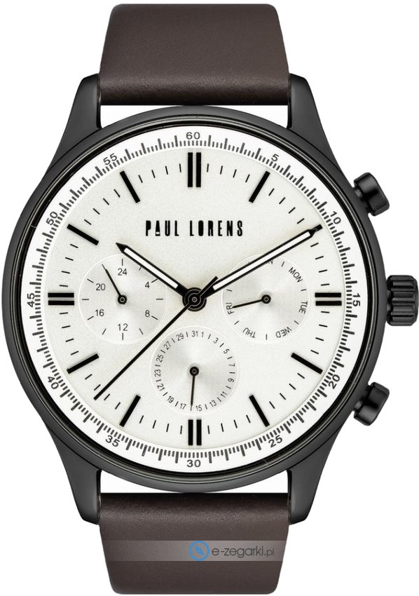 Męski zegarek Paul Lorens PL10602A2-3B1-2 to zegarek, który dzięki swemu wzornictwu zawsze będzie prezentował się dobrze. Wysokiej jakości tarczę zegarka ozdobiono białym kolorem. Godzina prezentowana jest w sposób analogowy co niezmiernie łatwo pozwala ją odczytać. Koperta jest w kolorze czarnym szeroka jest na 44 mm - w kształcie okrągłym.