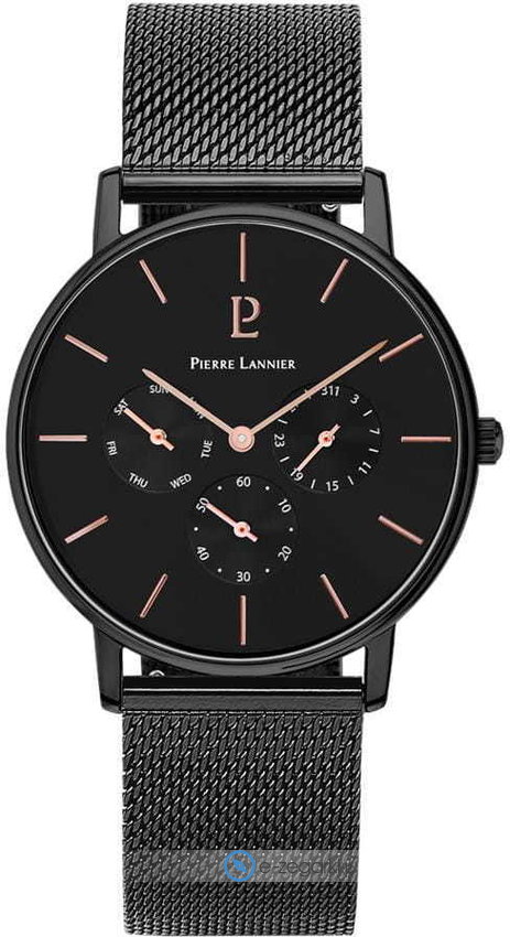 Model 209F438 marki Pierre Lannier to stylowy zegarek naręczny męski, który jest wyposażony w ciekawe rozwiązania oraz funkcje. Stylu nadaje wysokiej jakości tarcza w kolorze czarnym. Zaprezentowana metodą analogową bieżąca godzina jest czytelna i łatwa do sprawdzenia. Koperta została pokryta kolorem czarnym szeroka jest na 39 mm oraz ma grubość 8 mm - w kształcie okrągłym.