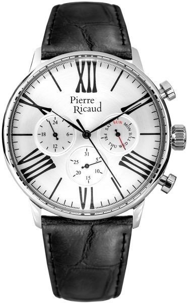 Zegarek męski P97212.5263QF marki Pierre Ricaud to dobre połączenie funkcjonalności oraz ciekawego designu. Tarcza zegarka jest w kolorze srebrnym. Zegarek ten prezentuje aktualny czas w formacie analogowym dzięki czemu odczyt jest bardzo łatwy. Koperta jest ozdobiona kolorem srebrnym szeroka jest na 45 mm oraz ma grubość 12 mm - wyróżnia się okrągłym kształtem.