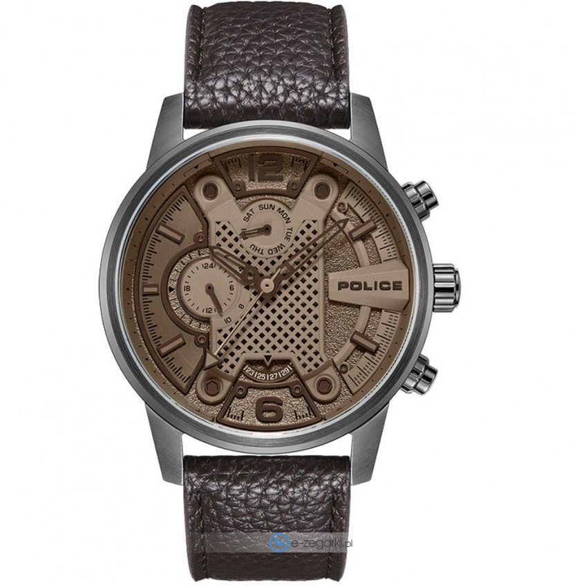 Męski zegarek Police PEWJF2203302 to zegarek, który dzięki swemu wzornictwu zawsze będzie prezentował się dobrze. Nieschematyczny wygląd zegarka uzyskano także dzięki tarczy w kolorze szarym. Zaprezentowana metodą analogową aktualna godzina jest czytelna i prosta do odczytania. Koperta w odcieniach koloru szarego szeroka jest na 48 mm.