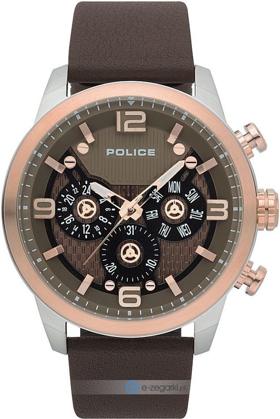 Zegarek męski PL.15415JSTR/12 marki Police to idealne połączenie funkcjonalności oraz modnego wzornictwa. Atrakcyjny wygląd czasomierza osiągnięto dzięki tarczy w kolorze brązowym. Koperta została pokryta kolorem stalowym szeroka jest na 48 mm - w kształcie okrągłym.