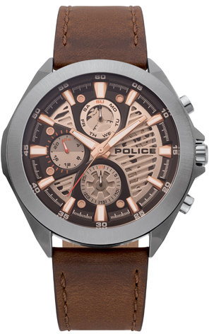 Zegarek męski PL.15654JSU/04 marki Police to stylowe połączenie funkcjonalności oraz ciekawego wzornictwa. Zaprezentowana metodą analogową aktualna godzina jest czytelna i łatwa do odczytania. Koperta szeroka jest na 47 mm oraz ma grubość 11.7 mm - w kształcie okrągłym.