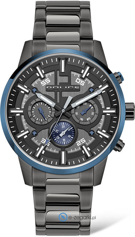 Model PL.PEWJK2003440 marki Police to elegancki zegarek naręczny męski, który posiada pomysłowe rozwiązania oraz funkcje. Cyferblat zegarka jest w kolorze szarym. Zaprezentowana metodą analogową bieżąca godzina jest czytelna i szybka do odczytania. Koperta została ozdobiona kolorem szarym szeroka jest na 48 mm oraz ma grubość 12 mm - wyróżnia się okrągłym kształtem.