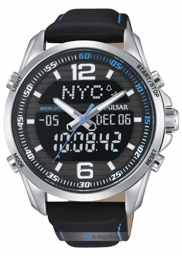 Posiada funkcję czasu światowego przez co pokazuje czas w różnych strefach czasowych na podstawie informacji z największych miast na świecie. Szczegółowy pomiar czasu dostarcza wbudowany chronograf - stoper manualny. Nowoczesny i typowo sportowy zegarek idealnie pasuje do Twojego sportowego stylu.